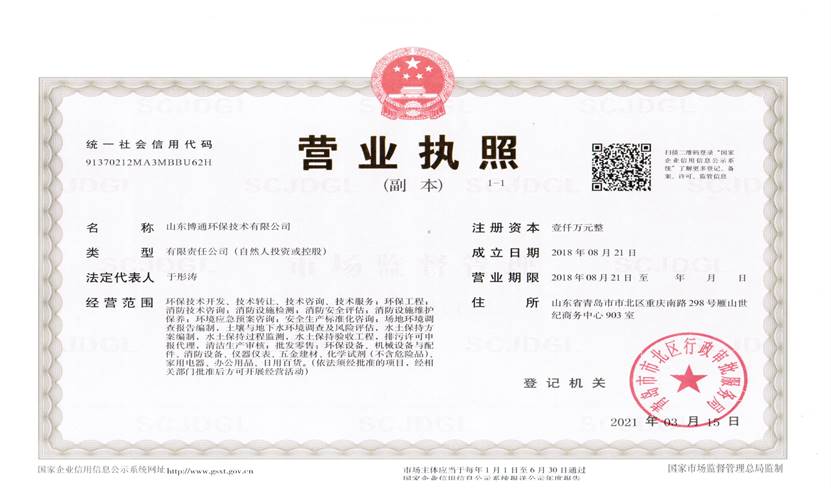 山東博通環(huán)保技術(shù)有限公司是一家專業(yè)從事環(huán)保、安全、消防的多元化技術(shù)服務(wù)公司,公司致力于打造專業(yè)的技術(shù)服務(wù)團隊,立足青島,輻射山東,服務(wù)范圍涵蓋:環(huán)保技術(shù)開發(fā)、技術(shù)轉(zhuǎn)讓、技術(shù)咨詢、技術(shù)服務(wù);環(huán)保工程;消防技術(shù)咨詢;消防設(shè)施檢測;消防安全評估;消防設(shè)施維護保養(yǎng);環(huán)境應(yīng)急預(yù)案咨詢;安全生產(chǎn)標(biāo)準(zhǔn)化咨詢;場地環(huán)境調(diào)查報告編制,土壤與地下水環(huán)境調(diào)查及風(fēng)險評估,水土保持方案編制,水土保持過程監(jiān)測,水土保持驗收工程,排污許可申報代理,清潔生產(chǎn)審核;批發(fā)零售:環(huán)保設(shè)備、機械設(shè)備與配件、消防設(shè)備、儀器儀表、五金建材、化學(xué)試劑(不含危險品)。公司具有“建設(shè)手續(xù)一站式辦理,安環(huán)問題一條龍解決”的獨特優(yōu)勢,可為客戶提供高效、優(yōu)質(zhì)的安全、環(huán)保、消防管家技術(shù)服務(wù)。